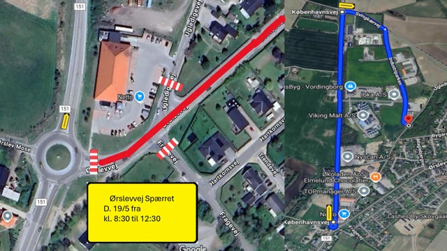 - Tirsdag d. 20. maj fra kl. 06:00 til 18:00 vil Ørslevvej være spærret mellem Ugledigevej & Rørkærvej.